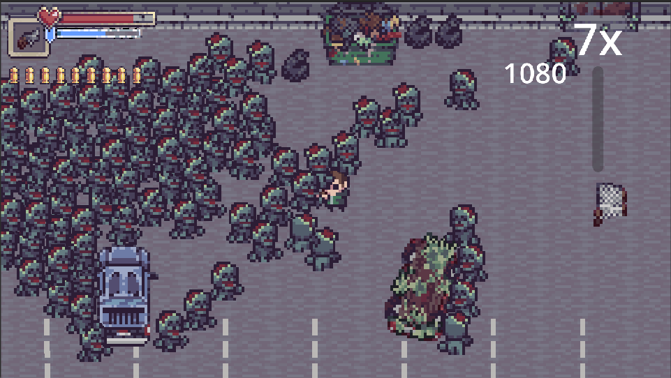 Zompocalypse! is a top-down 2D horde shooter where every decision — and every sound — can get you killed.